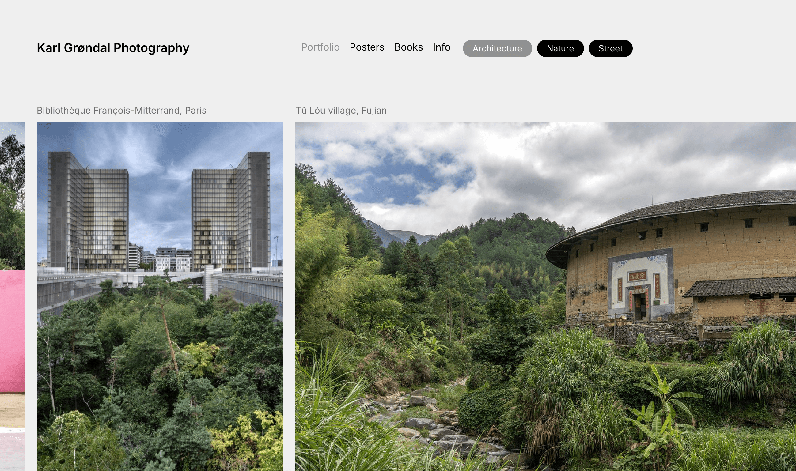 Jeg har udviklet en porteføljehjemmeside for fotografen Karl Grøndal med Next.js, React og Tailwind CSS som frontend-teknologier og Strapi som headless CMS. Siden er designet til at fremhæve Karls fotografier i et minimalistisk og stilrent layout, hvor billederne får fuld opmærksomhed.