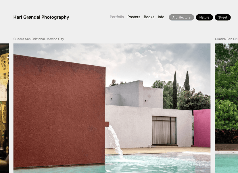 Det skaber en flydende og intuitiv brugeroplevelse, der lader Karls fotografier stå i centrum i et minimalistisk og visuelt rent layout.